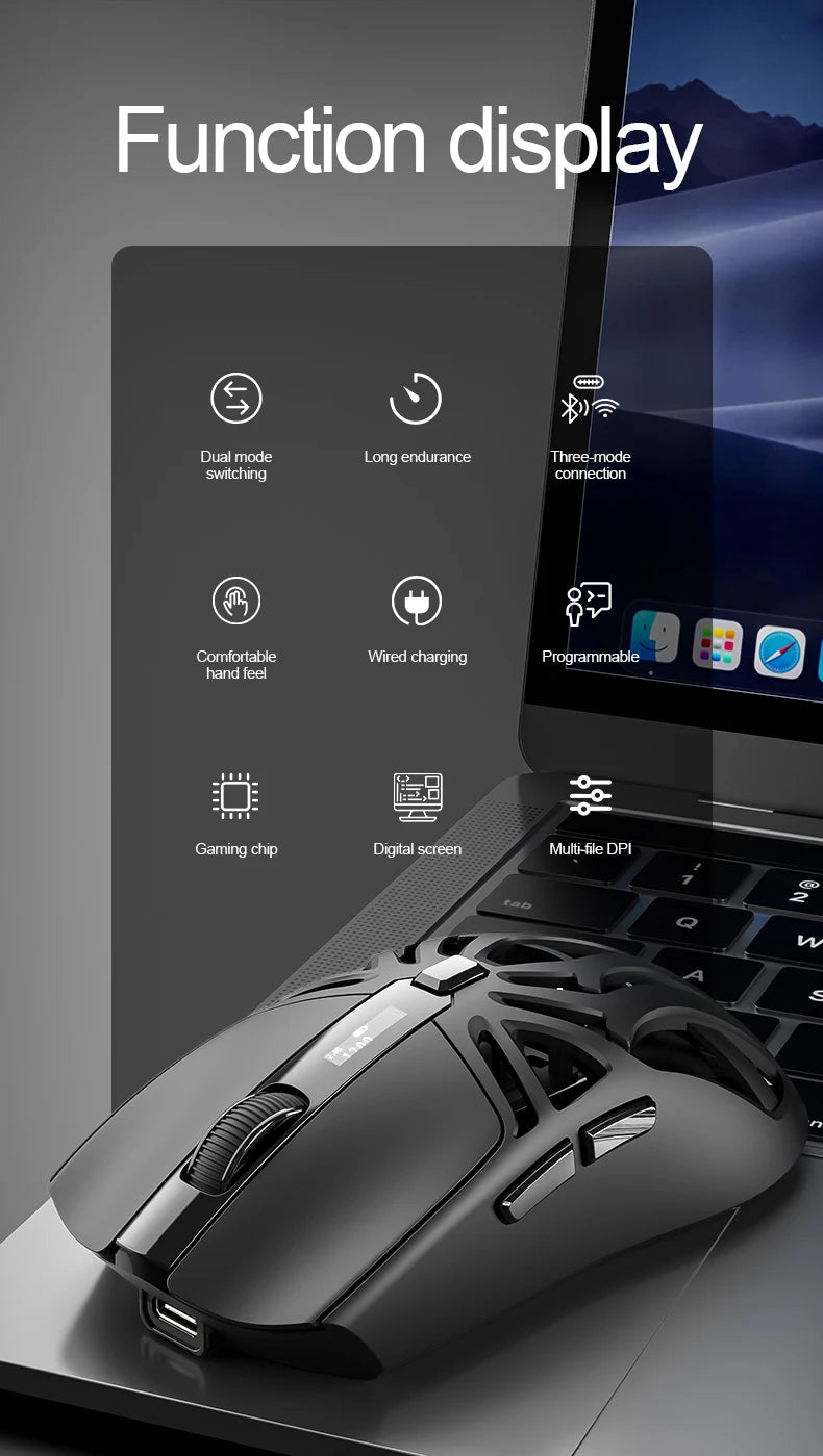 SMAILWOLF Gaming Mouse ThreeMode Wireless Bluetooth Digital Screen 1000Hz 10000DPI Lightweight Macro E-sports Mouse For Notebook